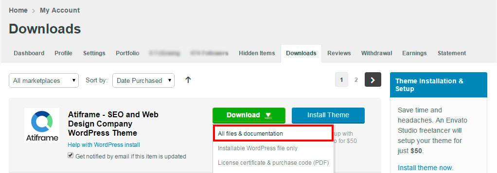 1. Download archive with the theme on your Themeforest account.