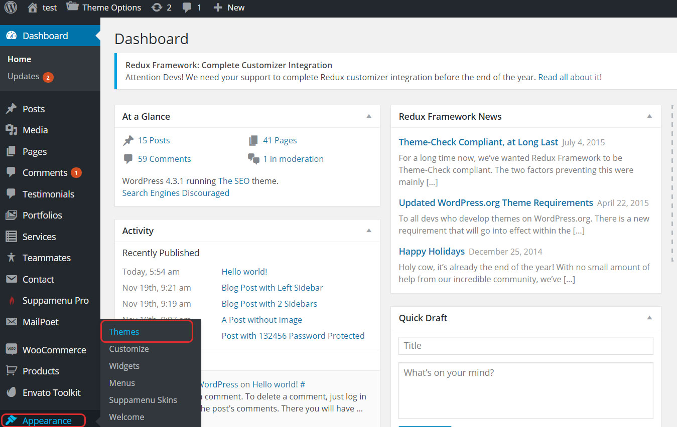 4. Go to Appearance > Themes on the sidebar.