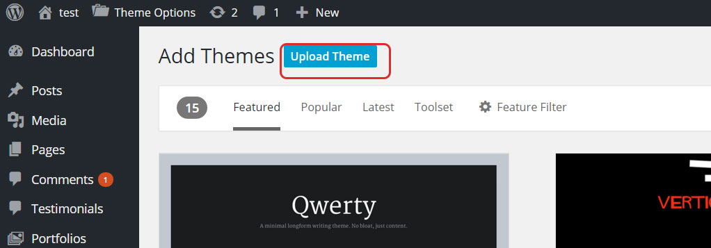3. Click on the Upload Theme button.