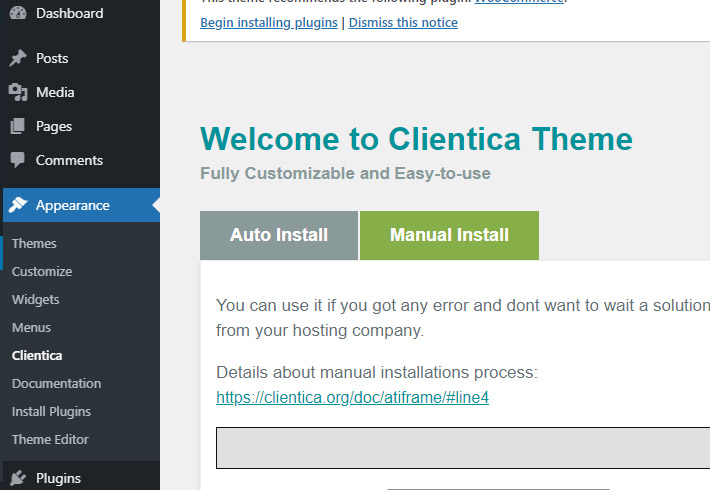 Install clientica Installer plugin.