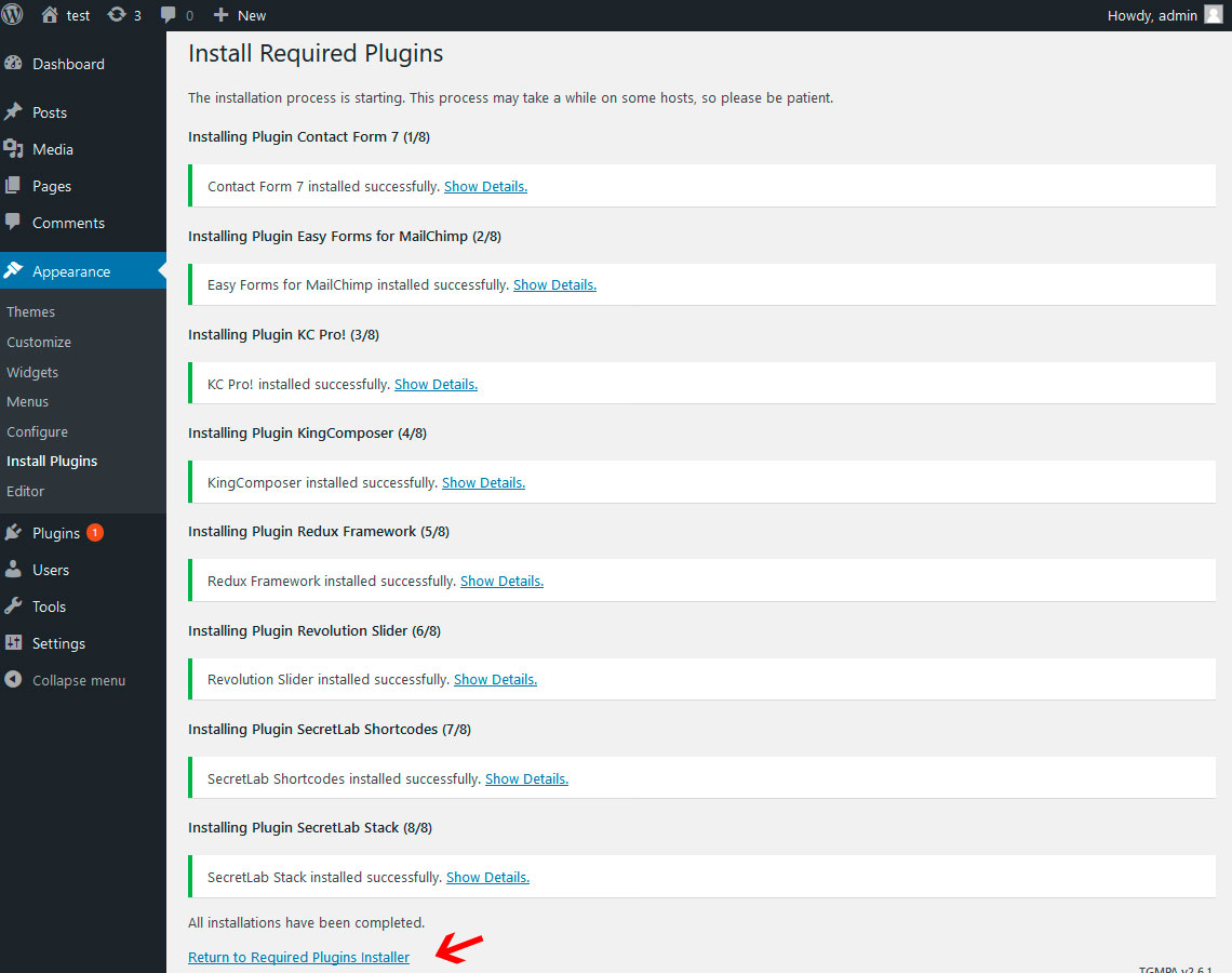 3. Click Return to required plugin installer link