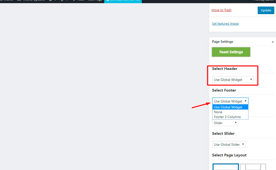 You can set footer and header that you want to display on Theme Options -> General Settings. Individual header and footer for any page you can set in right setion Page Layout.