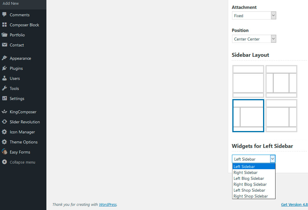 This is where you customize your blog display options. Select slider, page layout and sidebar options. These options work for the Post post type, that include all categories and subcategories.