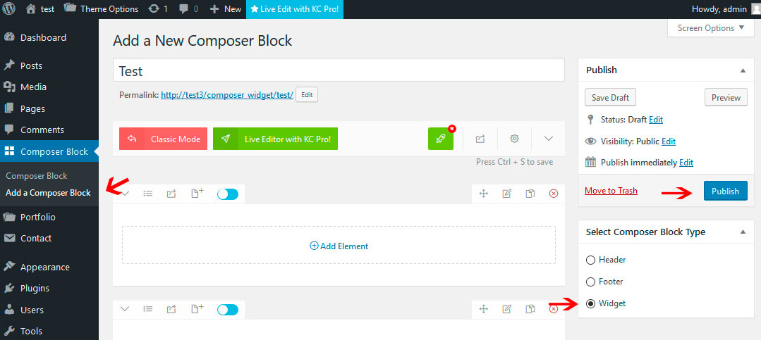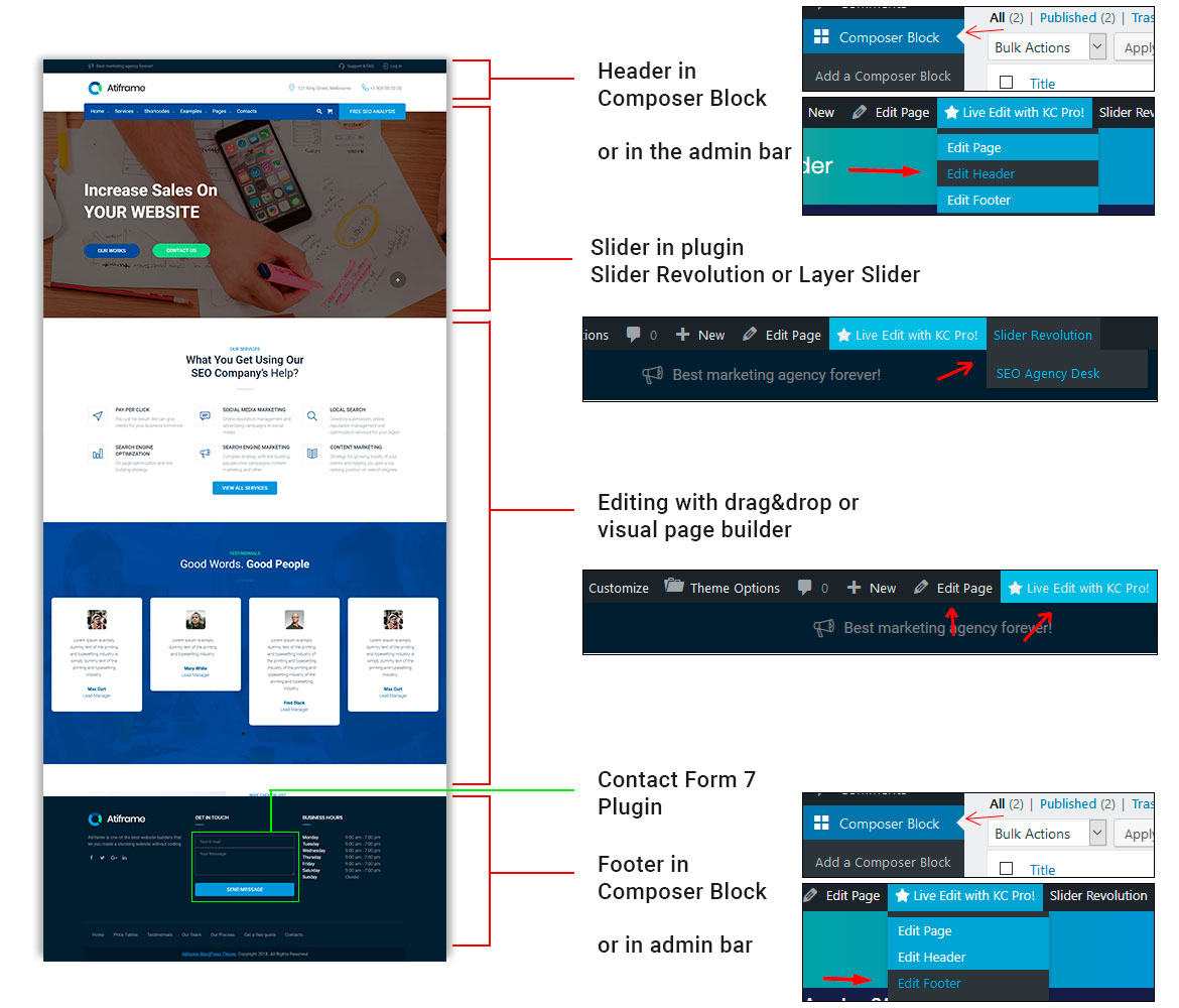 You can edit footer section or create a new one at Composer Block plugin. These footer is editable with King Composer